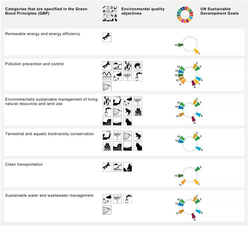 根據(jù)這一框架,債券籌集資金可用于 “合格的綠色支出”,包括旨在減緩氣候變化、加強生物多樣性、促進可再生能源項目或減少運輸部門碳排放的支出。綠色債券不能用于與核能、化石能源、大規(guī)模水電(10兆瓦以上)相關的投資。具體來說,瑞典綠色債券可用于支持以下項目: