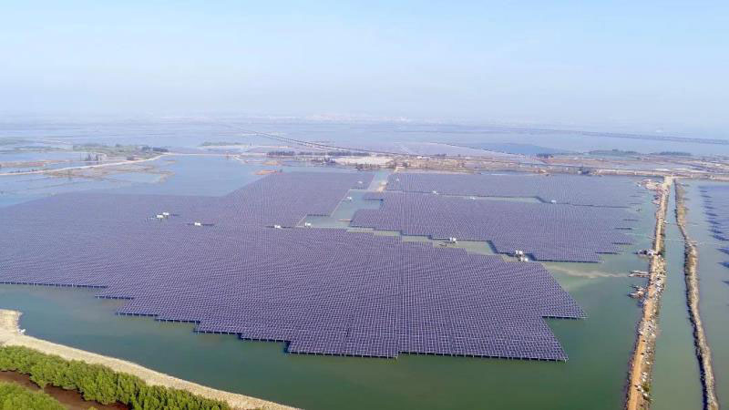 茫茫碧海波連天,向陽(yáng)花開別樣藍(lán)。一排排整齊的太陽(yáng)能板如一雙雙采擷陽(yáng)光的妙手,源源不斷將光能轉(zhuǎn)化為清潔電能,成為獨(dú)具一格的海邊勝景。