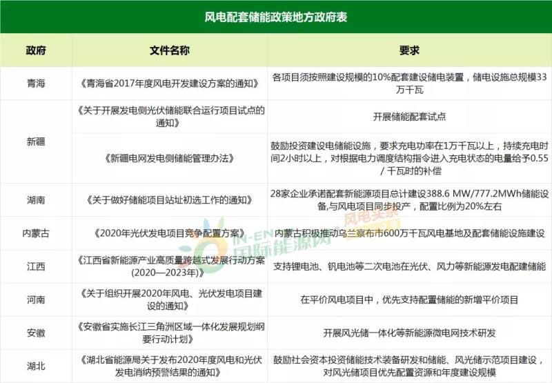 而對于地方政府來說,由于職責(zé)和行政范圍的不同,更多地將促進(jìn)消納策略具體化、細(xì)則化,將具體的風(fēng)電+儲能的策略放在促進(jìn)消納方案的文件之中。通過鼓勵、支持、引導(dǎo)地方風(fēng)電項目建設(shè)儲能裝置來對風(fēng)電進(jìn)行消納。同時,我們還可以發(fā)現(xiàn),平價風(fēng)電配置儲能項目成為地方政府重點鼓勵和引導(dǎo)的方向。