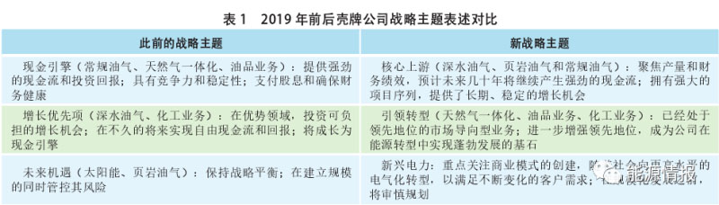 2019年6月,殼牌公司對業(yè)務(wù)組合的戰(zhàn)略主題進行了調(diào)整,確保其業(yè)務(wù)組合能夠很好地適應(yīng)未來發(fā)展環(huán)境(見表1)。新的戰(zhàn)略主題表述,聚焦于有助于推進公司能源轉(zhuǎn)型的領(lǐng)域,以及未來十年需求保持增長的領(lǐng)域。殼牌將繼續(xù)發(fā)展油氣業(yè)務(wù),包括深水和頁巖油氣,以滿足需求增長,通過提供石油、天然氣和低碳能源,強化其在油氣行業(yè)中的領(lǐng)先地位。