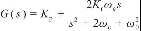 PR控制方法在指定頻率處具有無窮大增益,在其他頻域增益較小,因此可以完全無靜差地跟蹤指定正弦電壓,但是無窮大的增益會產(chǎn)生系統(tǒng)不穩(wěn)定問題。準(zhǔn)PR方法在指定頻率處的有較大增益,足夠?qū)崿F(xiàn)較小的靜態(tài)誤差跟蹤。因此,本文提出在a-b-c坐標(biāo)系下采用準(zhǔn)PR控制方法實現(xiàn)正弦電壓輸出,其傳遞函數(shù)為