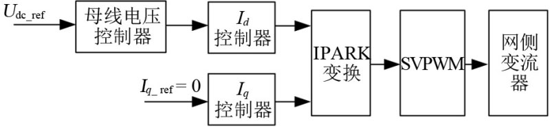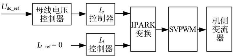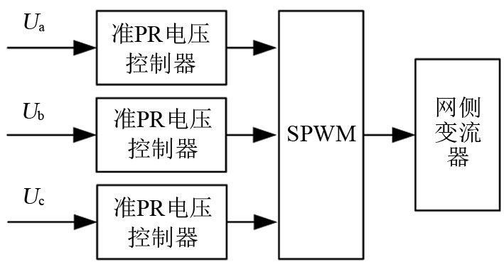 在機側(cè)控制中,設(shè)置母線電壓控制為外環(huán),內(nèi)環(huán)是d-q軸電流控制,同樣采用id=0的控制方式。在網(wǎng)側(cè)輸出正弦電壓控制中,不太適合采用PI控制方法,原因在于:若直接在a-b-c坐標(biāo)系下進(jìn)行跟蹤控制,則會存在跟蹤靜差;若將電壓變換到d-q坐標(biāo)系下進(jìn)行控制,若負(fù)載出現(xiàn)三相不平衡,則會產(chǎn)生負(fù)序電壓分量,此時還需要將正負(fù)序分量進(jìn)行解耦并做單獨控制,計算比較復(fù)雜。