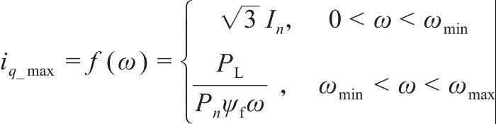 式中,Pn為電機極對數(shù);ψfm為轉(zhuǎn)子磁鏈幅值;iq為交軸電流。設(shè)機側(cè)變流器額定額定電流為In,則有