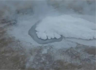 液氫的意外泄漏擴散規(guī)律研究是保障液氫安全使用的重點。美國國家航空航天局(NASA)、德國聯(lián)邦材料研究與測試學會(BAM)和英國健康安全實驗室(HSL)都成功開展了液氫的大規(guī)模泄漏試驗,得到了可燃蒸汽云濃度、地面溫度、蒸汽云耗散時間等寶貴數(shù)據(jù),其中HSL液氫試驗形成的地面空氣冷凝見圖1。液氫大規(guī)模泄漏試驗的模擬研究也在進行中,國內(nèi)外很多學者建立了一系列液氫泄漏模型,并利用上述試驗數(shù)據(jù)進行了模型有效性驗證,同時研究了泄漏率、風速條件、大氣壓力、地面溫度等參數(shù)對液氫可燃蒸汽云形成和擴散的影響。但由于液氫的復雜特性,其泄漏模型的建立比氣態(tài)氫更為困難,現(xiàn)階段仍不成熟,模擬結(jié)果與試驗結(jié)果存在一定的偏差。除了大規(guī)模泄漏試驗外,邊界條件更明確的小型液氫泄漏試驗對于模型的驗證具有重要意義??査刽敹蚶砉W院(KIT)的小型液氫泄漏試驗表明液氫的濃度衰減速度小于氣態(tài)氫。