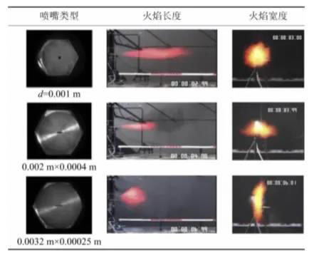 表1不同噴嘴類型下的氫氣噴射火試驗