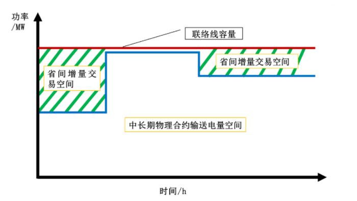 考慮到我國電力市場建設(shè)實際,近期跨省區(qū)市場模式主要是中長期物理合約+省間增量現(xiàn)貨模式。因此,以該模式為基礎(chǔ)設(shè)計促進新能源跨省區(qū)消納的市場機制。