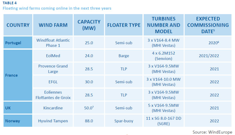 歐洲未來3年可能漂浮式海上風(fēng)電場情況