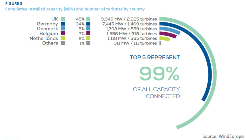 歐洲海上風(fēng)電各國裝機情況(前5名占99%)