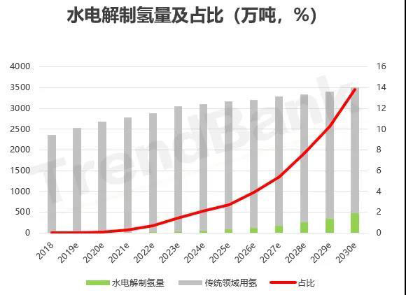 4. 到2030年綠氫在氫源中占比達到14%以上,綠氫發(fā)展逐年增速