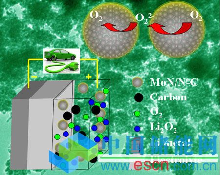 新型過渡金屬氮化物催化劑的鋰空氣電池示意圖