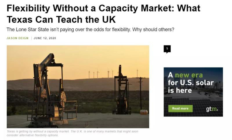 GreenTechMedia網(wǎng)站發(fā)表Jason Deign的文章,題目是:Flexibility Without A Capacity Market: What Texas Can Teach the UK(沒有容量市場的靈活性:德克薩斯州能教給英國什么)
