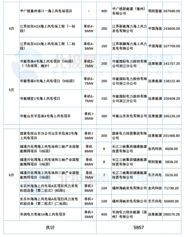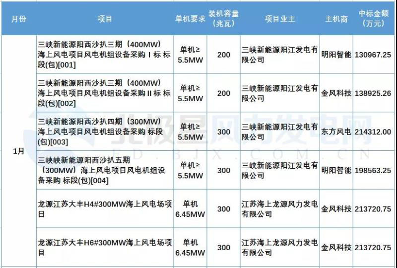 2020年1-6月,約28個(gè)風(fēng)電項(xiàng)目標(biāo)段進(jìn)行了機(jī)組項(xiàng)目招標(biāo),涉及三峽、中廣核、華能、華潤等11風(fēng)電運(yùn)營商、6家整機(jī)商,共計(jì)5857兆瓦主機(jī)中標(biāo)信息,詳細(xì)信息如下。