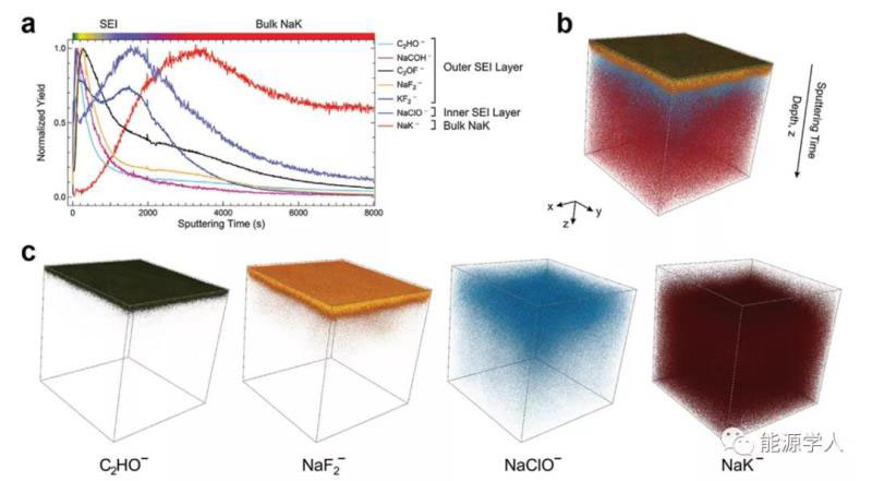 圖2 飛行時(shí)間二次離子質(zhì)譜分析Na-K/Na電解液界面層