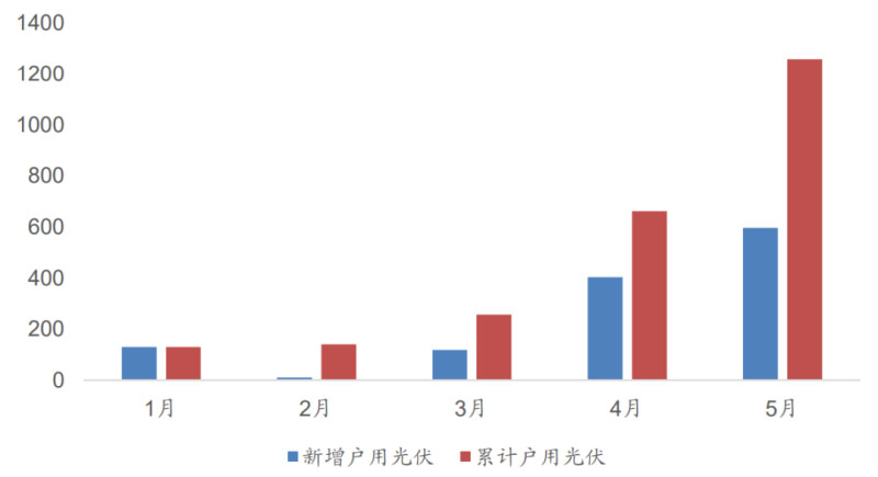 圖:國內(nèi)戶用光伏新增和累計(jì)裝機(jī)規(guī)模(單位:MW)