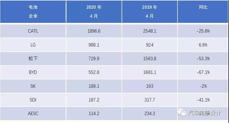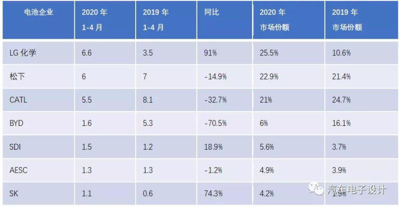 表1 2020年1-4月份的市場份額電池企業(yè)