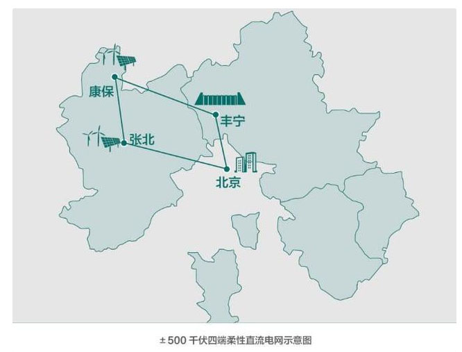6月25日,±500千伏張北柔性直流電網(wǎng)試驗(yàn)示范工程四端帶電組網(wǎng)成功。張北地區(qū)的清潔能源發(fā)電成功接入北京電網(wǎng),送至北京冬奧會的各個(gè)場館。