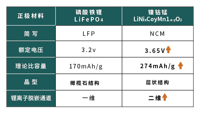 兩款電池的的負極、電解液及隔膜等均類似,最大的區(qū)別在于正極材料,并以此取名。