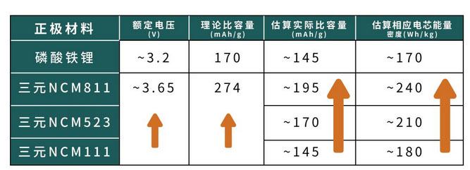 而三元NCM電池還可以通過提高Ni元素比例,進一步提高實際比容量(mAh/g),提高電芯能量密度。