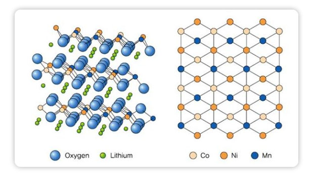 三元常見的表達方式還會在NCM后加一串數(shù)字,例如NCM523、NCM811等,代表了鎳鈷錳在材料中的大概比例。
