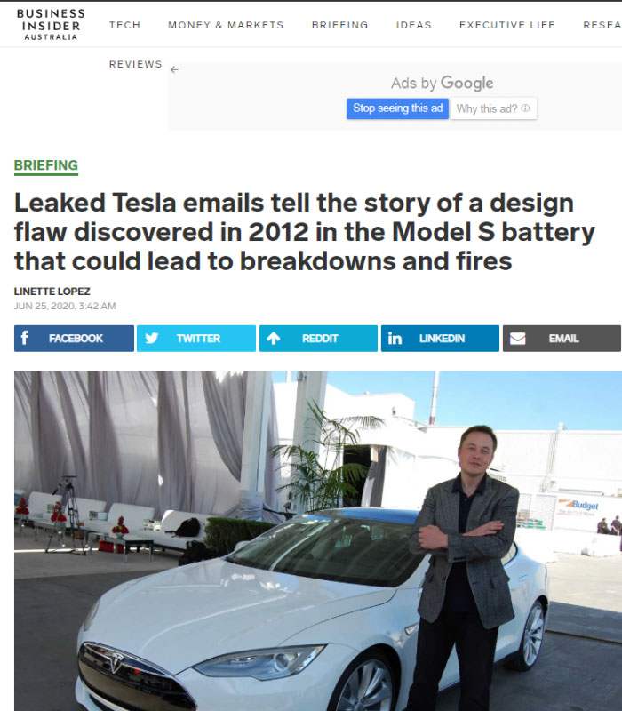 與榮耀光環(huán)同時存在的,是特斯拉層出不窮的質(zhì)量問題,此前發(fā)生的多起自燃事件就是典型的例子。而現(xiàn)在,外媒Business Insider的報道顯示,特斯拉從一開始就對車輛起火的緣由心知肚明。