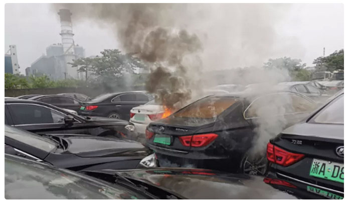 無獨有偶,昨天杭州拱墅區(qū)康橋街道平安橋村委會旁的停車場內(nèi)也發(fā)生了一起新能源汽車著火的事情。