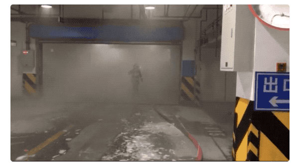 消防人員在5點24分到達著火現(xiàn)場,一名消防員說:“到達現(xiàn)場的時候,地下車庫已經(jīng)被起火產(chǎn)生的濃煙所籠罩了,空氣里有股很刺鼻的焦味。”