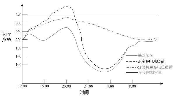 有序充電:智能配電終端采用配電臺區(qū)分時共享有序充電的運(yùn)行控制策略,在保證臺區(qū)充電功率不越限以及三相平衡(保障電能質(zhì)量)的前提下,利用用電低谷和碎片化時間進(jìn)行頻繁調(diào)配充電樁的接入退出控制,實(shí)現(xiàn)有序充電。