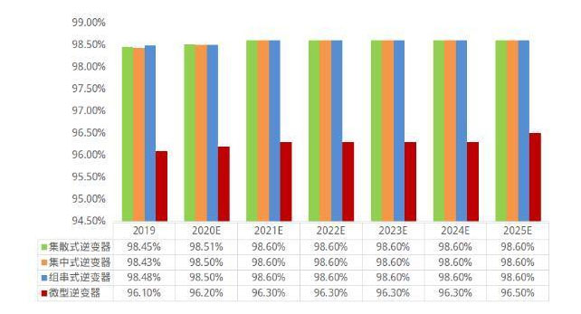 圖17:2019-2025年不同類型逆變器中國效率變化趨勢資料
