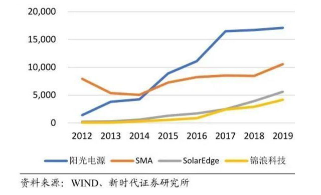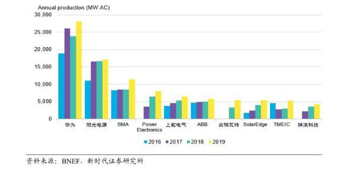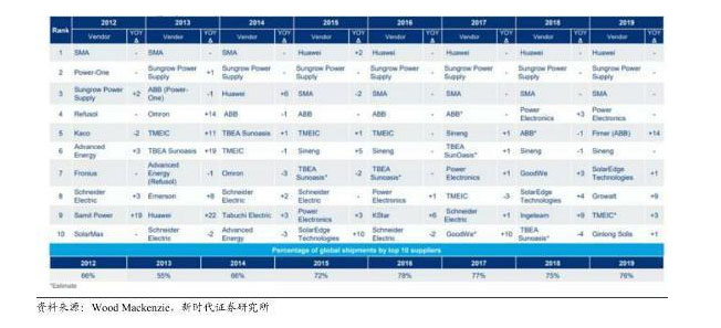 圖4:2012-2019年全球光伏逆變器出貨量排名(MW)