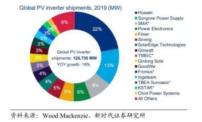 圖7:2019年全球逆變器出貨量排名(MW)