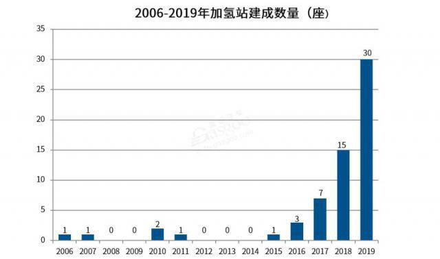 加氫站方面,2019 年我國(guó)加氫站建成 30 座,同比增加 100%。從 2006 年第一座加氫站落地開(kāi)始,截止到 2019 年底,我國(guó)累計(jì)建成 61 座加氫站。如今,氫能基礎(chǔ)設(shè)施越來(lái)越受到重視,按照 2019 年增長(zhǎng)速度,2020 年實(shí)現(xiàn)“ 100 座加氫站”的目標(biāo)大有希望。