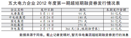 事實(shí)上,在今年3月15日超短期融資發(fā)行主體放寬至五大發(fā)電集團(tuán)后,華能便成為首家獲得注冊(cè)額度并批準(zhǔn)發(fā)行的企業(yè)。4月18日,中國(guó)華能集團(tuán)公司成功發(fā)行了其2012年度第一期50億元超短期融資券。該超短期融資券期限270天,票面年利率4.18%,綜合年成本率4.58%,比同期銀行貸款基準(zhǔn)利率低1.98個(gè)百分點(diǎn)。