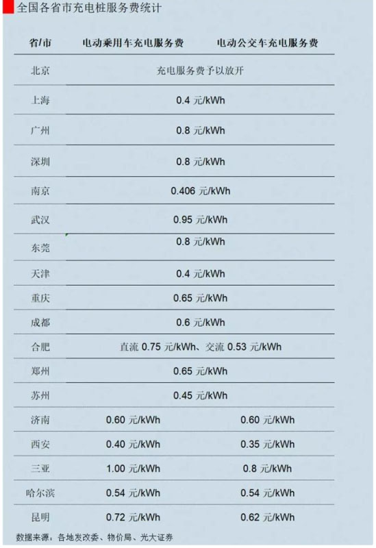 利用率提不上去是一一塊心病,服務(wù)費(fèi)運(yùn)營(yíng)商們收的也不自由。在服務(wù)費(fèi)這塊,由各地政府和發(fā)改委自行制定,上限定的死死的。從目前多省市的公告和政策來(lái)看,充電服務(wù)費(fèi)有持續(xù)下降的趨勢(shì)。