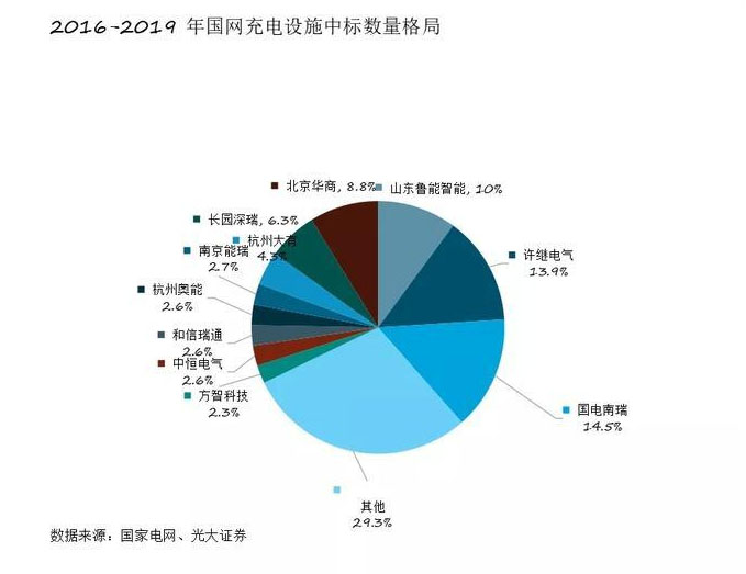 國(guó)家電網(wǎng)是國(guó)內(nèi)最大的充電樁公開(kāi)招標(biāo)企業(yè),也是最早入行的建設(shè)運(yùn)營(yíng)方。近4年來(lái)國(guó)網(wǎng)每年進(jìn)行三批次的充電樁招標(biāo),統(tǒng)計(jì)下來(lái)中標(biāo)數(shù)量前三的是國(guó)電南瑞、許繼電氣和山東魯能,清一色國(guó)網(wǎng)嫡系。