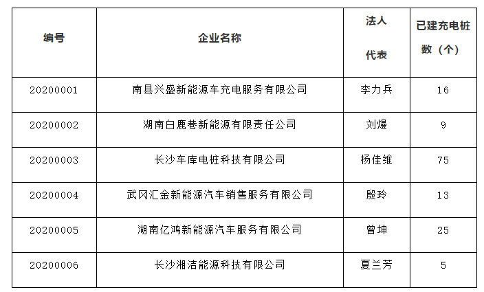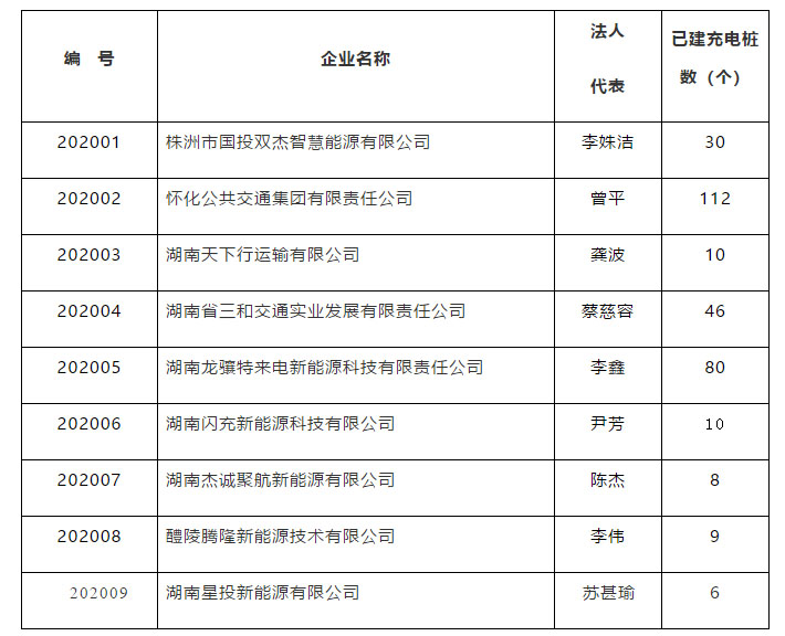 關(guān)于湖南省2020年第一批電動(dòng)汽車充電設(shè)施運(yùn)營企業(yè)的公示