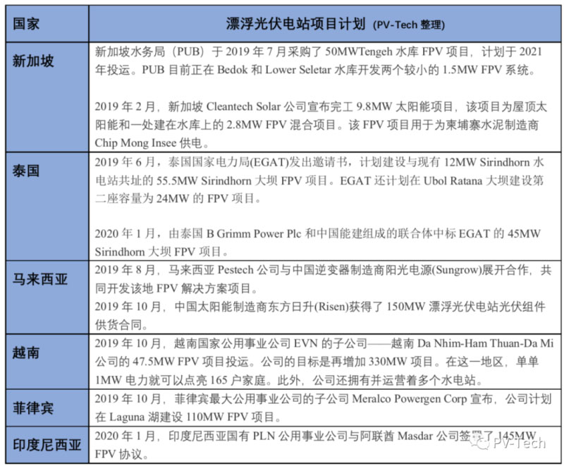 表1,至少6家東盟國家宣布了大規(guī)模漂浮光伏計劃