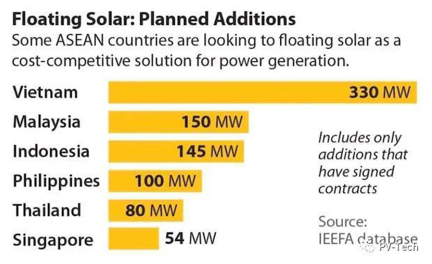 至2019年,東盟國家中FPV的總裝機容量大多在1MW以下。這種情況現(xiàn)在發(fā)生了巨大變化。最近,至少有五個國家宣布了大規(guī)模漂浮光伏計劃。
