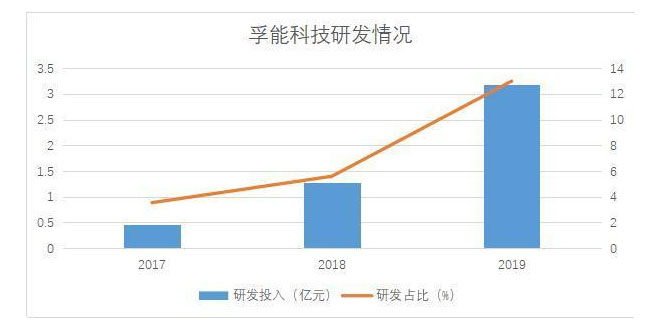 研發(fā)方面,孚能科技報(bào)告期內(nèi)研發(fā)投入大幅度提高,投入金額分別為0.47億元、1.27億元、3.18億元,復(fù)合增長(zhǎng)率達(dá)到160.11%。研發(fā)占比也由2017年的3.54%增長(zhǎng)到2019年的12.99%,漲幅超過(guò)9個(gè)百分點(diǎn),具體情況如下: