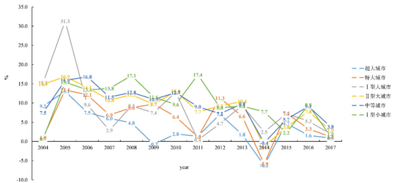 圖5 東部地區(qū)各類型城市人均生活用電量增速