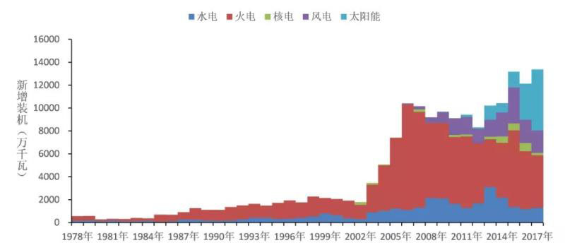 圖3 1978-2017年分類型新增裝機(jī)增長特點(diǎn)