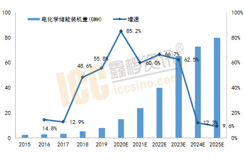 從2011-2019年,我國(guó)儲(chǔ)能產(chǎn)業(yè)發(fā)展飛快,儲(chǔ)能發(fā)展之快離不開各大發(fā)電企業(yè)及政策的支持。在19年經(jīng)歷了短暫的回落后,儲(chǔ)能領(lǐng)域在國(guó)內(nèi)電網(wǎng)側(cè)改革及政策支持下,市場(chǎng)發(fā)展迎來(lái)新的拐點(diǎn)。進(jìn)入2020年,僅在電化學(xué)儲(chǔ)能領(lǐng)域市場(chǎng)產(chǎn)生明顯變革,國(guó)內(nèi)新招標(biāo)的基站儲(chǔ)能、風(fēng)電項(xiàng)目等均已明確表示不再使用鉛酸電池,鑫欏資訊預(yù)測(cè),2025年國(guó)內(nèi)電化學(xué)儲(chǔ)能裝機(jī)規(guī)模將達(dá)到將接近80Gwh,未來(lái)幾年鋰電池儲(chǔ)能占比將達(dá)到95%以上,同時(shí)也為磷酸鐵鋰電池開辟一片新的廣闊藍(lán)圖。