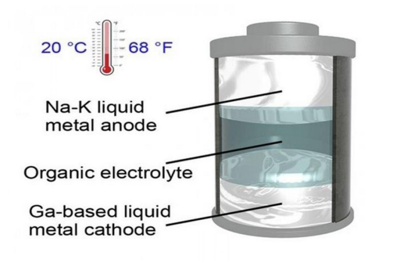 在最新的研究中,該科研團(tuán)隊(duì)發(fā)現(xiàn)了在室溫狀態(tài)下能夠保持液態(tài)的合金。他們確定了兩種工作良好的合金,使用鈉鉀合金作為陽極,而使用鎵銦合金作為陰極。這些電池能夠在20°C(68°F)的溫度下保持液態(tài),該團(tuán)隊(duì)稱這是所有全液態(tài)金屬電池的最低工作溫度。