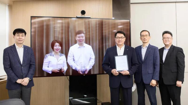 因疫情原因無(wú)法面對(duì)面溝通,LS電氣集團(tuán)會(huì)長(zhǎng)具滋均在韓國(guó)總部LS大廈,南都電源朱保義總裁和昆蘭于忠蘭董事長(zhǎng)則在LS電氣上??偛?,通過(guò)在線視頻方式進(jìn)行“跨國(guó)云簽約”。