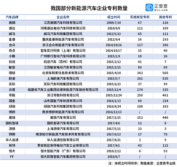 企查查數(shù)據(jù)節(jié)選了25家新能源汽車相關(guān)企業(yè)的專利數(shù)據(jù),其中實(shí)用新型專利數(shù)量和其他專利數(shù)量最多的企業(yè)均為北京車和家信息技術(shù)有限公司,分別為382件和565件。實(shí)用新型專利數(shù)量超過百件的企業(yè)共有8家。