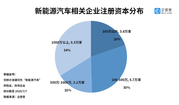 根據(jù)企查查數(shù)據(jù)顯示,目前我國(guó)新能源汽車相關(guān)的在業(yè)、存續(xù)企業(yè)共有19.2萬(wàn)家。2019全年新增4.7萬(wàn)家,今年二季度注冊(cè)量達(dá)到2萬(wàn)家,環(huán)比上升122.2%。注冊(cè)資金在1000萬(wàn)以上的企業(yè)有6.5萬(wàn)家,占比34%。另?yè)?jù)電動(dòng)知家消息,受益于新基建計(jì)劃,今年上半年我國(guó)新增充電樁相關(guān)企業(yè)近萬(wàn)家,截至6月底,我國(guó)經(jīng)營(yíng)范圍含“充電樁、新能源智能充電、電動(dòng)汽車充電”的企業(yè)將近8.4萬(wàn)家。目前我國(guó)新能源汽車市場(chǎng)發(fā)展可謂欣欣向榮。