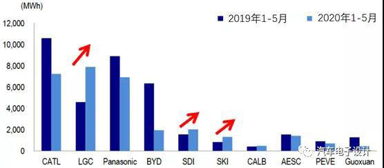 1-5月的韓國電池供應(yīng)商的供應(yīng)情況