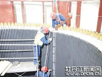 “定子繞組安裝施工簡稱定子下線,其工作主要包括定子上下層線棒嵌裝、端箍環(huán)及斜邊墊塊綁扎等諸多工序,這些工序均在安裝間定子防塵棚封閉環(huán)境下進(jìn)行?!睋?jù)技術(shù)人員介紹,受防塵棚高度影響,廠家原有起吊工裝無法使用,項(xiàng)目部技術(shù)骨干根據(jù)現(xiàn)場空間、環(huán)境等因素綜合考慮,設(shè)計(jì)發(fā)明專用下線工裝且經(jīng)過了專家及監(jiān)理、業(yè)主和廠家的一致認(rèn)可,在施工中不僅節(jié)省工期,同時(shí)節(jié)約人力投入?,F(xiàn)場設(shè)置除濕、除塵、通風(fēng)設(shè)施,同時(shí)制定定子下線工作面臨時(shí)管理制度,嚴(yán)格控制進(jìn)出人員,對(duì)所有進(jìn)出人員進(jìn)行登記,確保定子安裝過程質(zhì)量。為施工營造一個(gè)無塵環(huán)境。