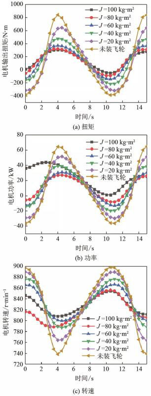 (3)使用飛輪能減小電動(dòng)機(jī)扭矩、功率和速度的波動(dòng),且隨著轉(zhuǎn)動(dòng)慣量的增大波動(dòng)幅值越小。