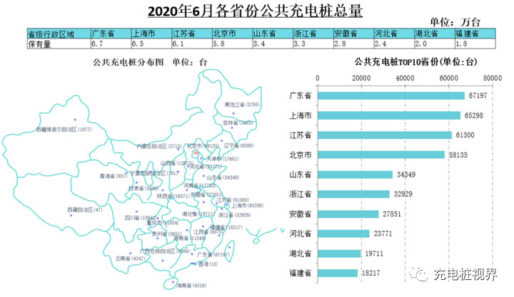 廣東、上海、江蘇、北京、山東、浙江、安徽、河北、湖北、福建TOP10地區(qū)建設(shè)的公共充電基礎(chǔ)設(shè)施占比達73.2%。