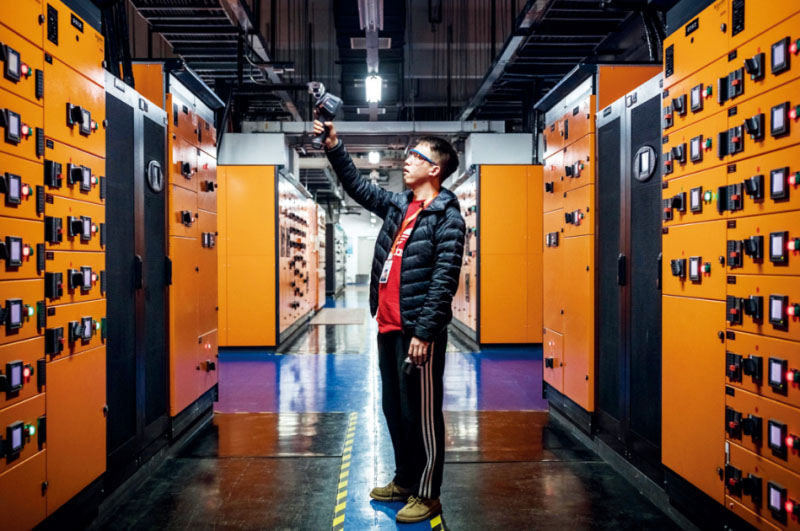 國(guó)網(wǎng)安徽省電力有限公司檢修分公司的運(yùn)維人員在1000千伏特高壓淮南變電站與機(jī)器人協(xié)同巡視電力設(shè)備。圖/IC